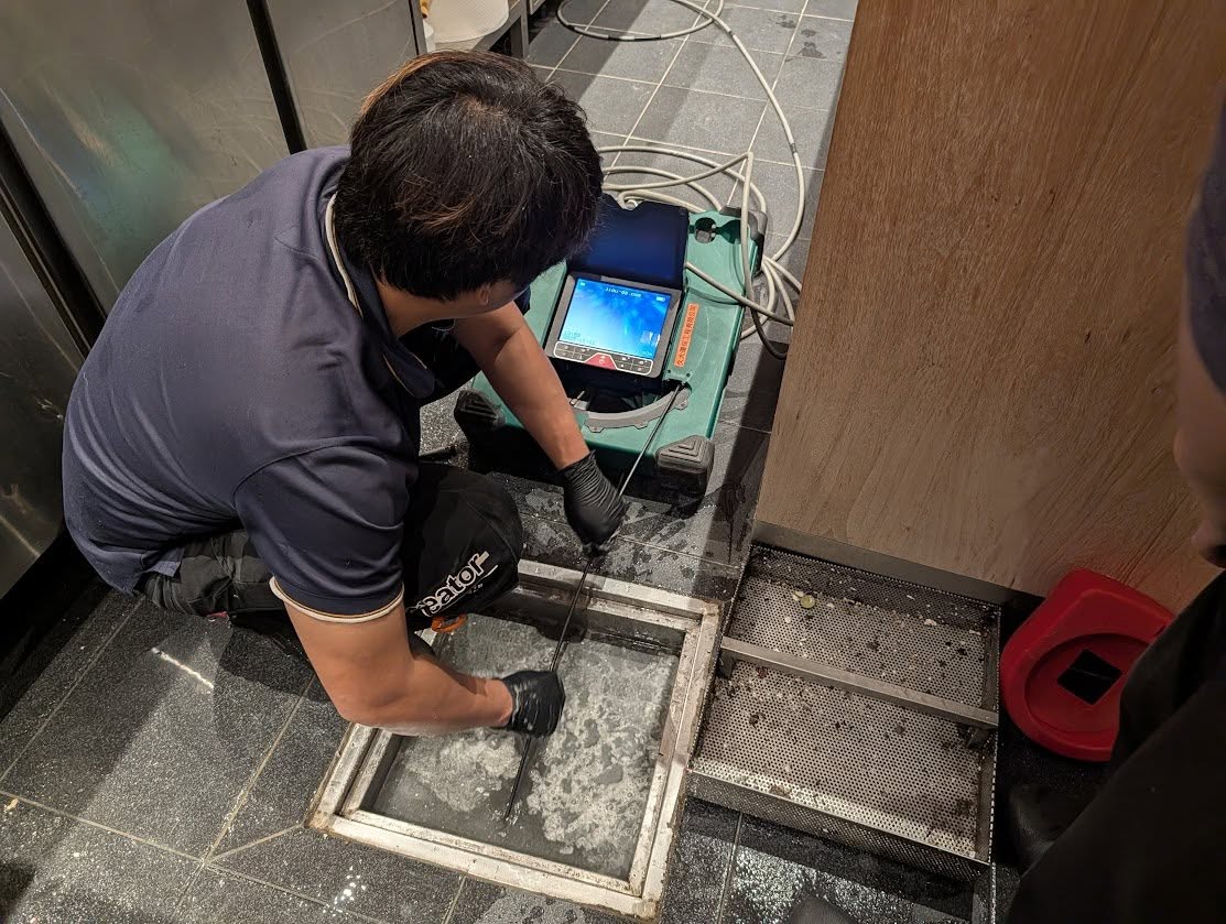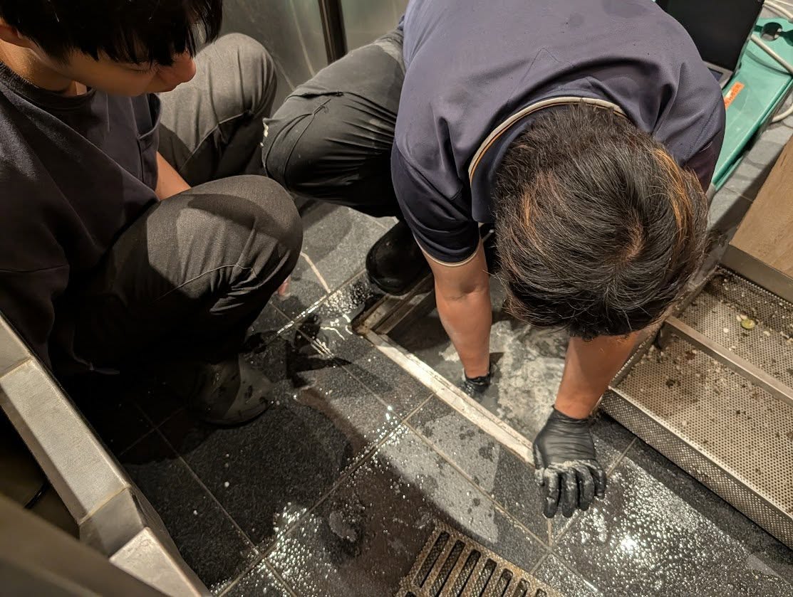 某餐廳廚房截油槽突然堵塞只要用水就會淹水 已經影響餐廳營業 緊急尋求協助