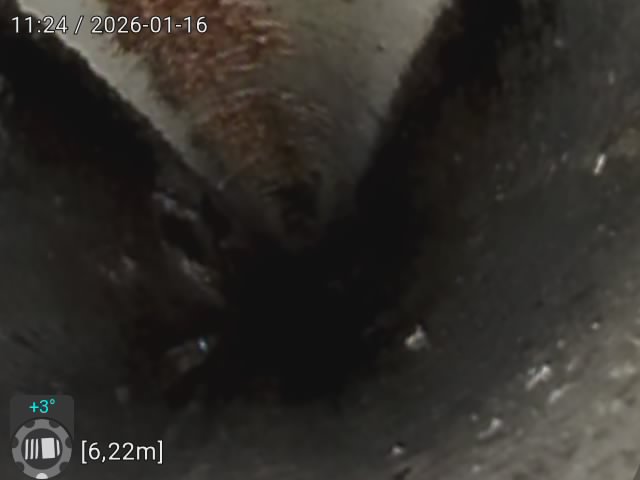 管道內視鏡進入後馬上就發現大量水泥堵塞