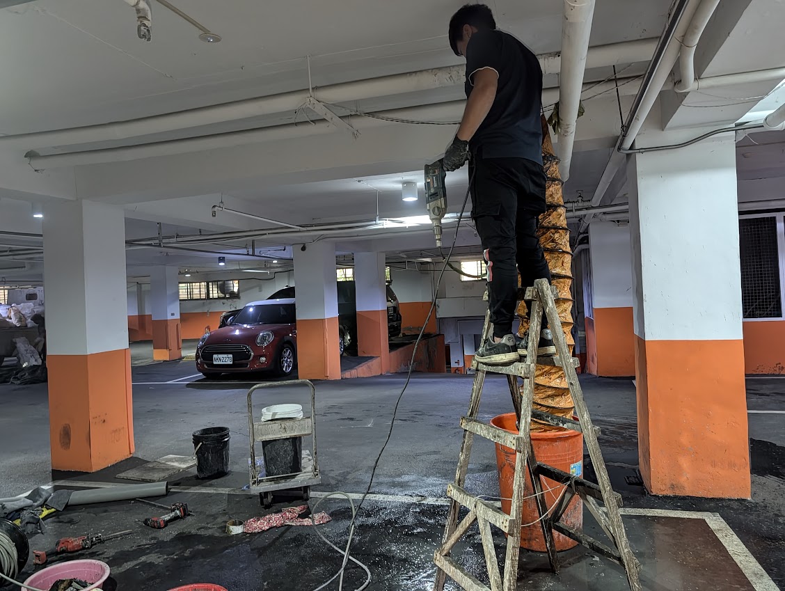 由於水泥不容易清理師傅也不短更換適合刀具並配合管道內視鏡對水泥精準打擊